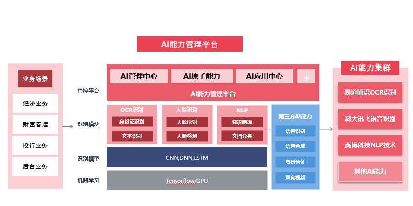 在疫情“無接觸”業(yè)務的影響下,金融公司自身資源不斷調整、發(fā)展方向逐漸轉變、并憑借作為金融產品輸出渠道的天然優(yōu)勢,使得金融行業(yè)對人工智能的應用和理解逐漸加深,導致金融機構對智能AI+的解決方案的訴求逐漸增加,也讓如何構建“AI管理平臺“成為行業(yè)轉型的核心問題。