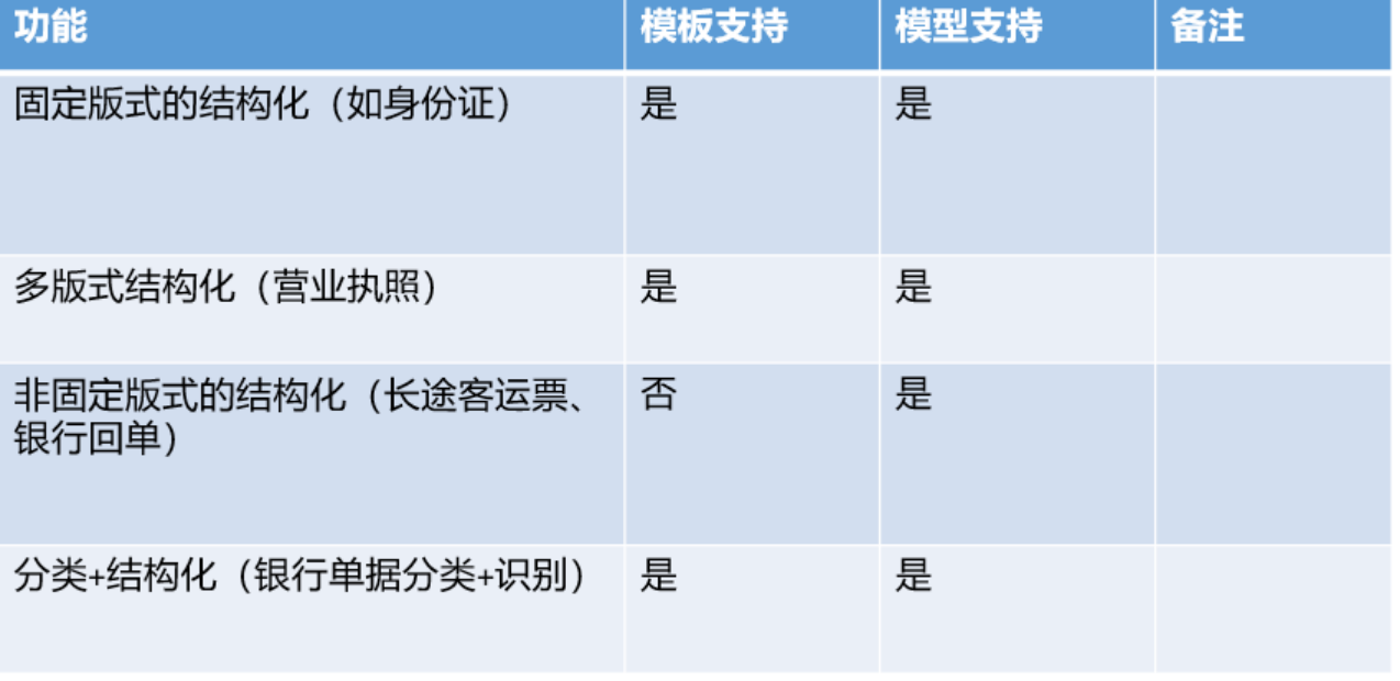 智能結(jié)構(gòu)化平臺(tái)用于訓(xùn)練產(chǎn)生針對(duì)各種不同版式的OCR識(shí)別引擎,滿足銀行自動(dòng)化、專業(yè)化、模塊化、高性能等業(yè)務(wù)及技術(shù)要求,支持身份證、銀行卡等固定版式的結(jié)構(gòu)化,營業(yè)執(zhí)照等多版式的結(jié)構(gòu)化,銀行回單、長(zhǎng)途客運(yùn)票等非固定版式的結(jié)構(gòu)化,支持銀行單據(jù)分類+識(shí)別等分類結(jié)構(gòu)化。總而言之,可以支持銀行80%OCR識(shí)別需求的自研能力。