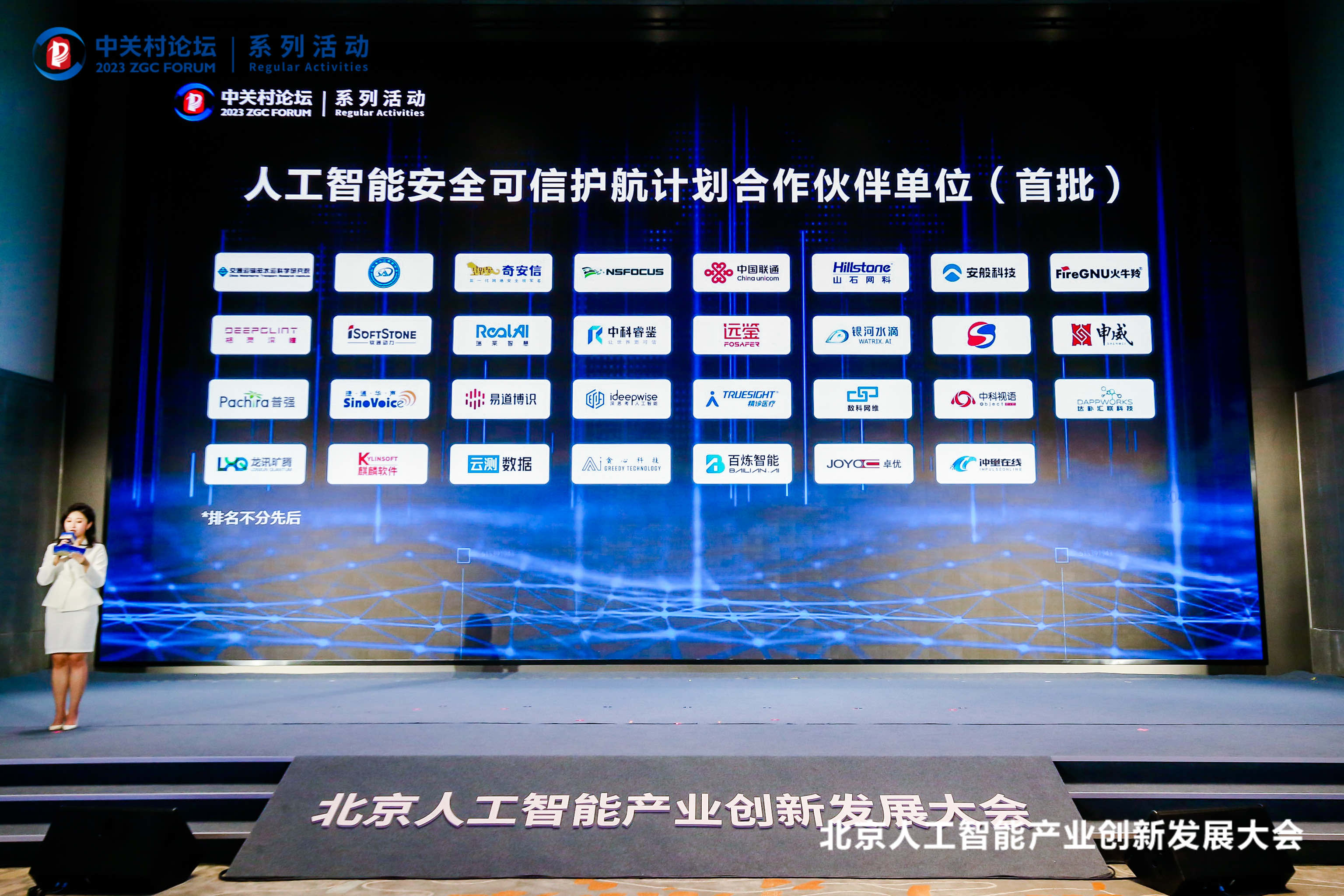 為更好地探索人工智能安全可信管理解決方案,指導(dǎo)行業(yè)單位開(kāi)展人工智能安全可信度自評(píng)估,推動(dòng)行業(yè)自律,進(jìn)一步推動(dòng)人工智能產(chǎn)業(yè)安全可信發(fā)展,國(guó)家工業(yè)信息安全發(fā)展研究中心發(fā)起“人工智能安全可信護(hù)航計(jì)劃”,并在本次會(huì)上,聯(lián)合北京市門(mén)頭溝區(qū)人民政府、中關(guān)村發(fā)展集團(tuán)股份有限公司、華為技術(shù)有限公司正式對(duì)外發(fā)布了“人工智能安全可信護(hù)航計(jì)劃生態(tài)發(fā)展中心”,易道博識(shí)成為該計(jì)劃首批入選合作伙伴單位。