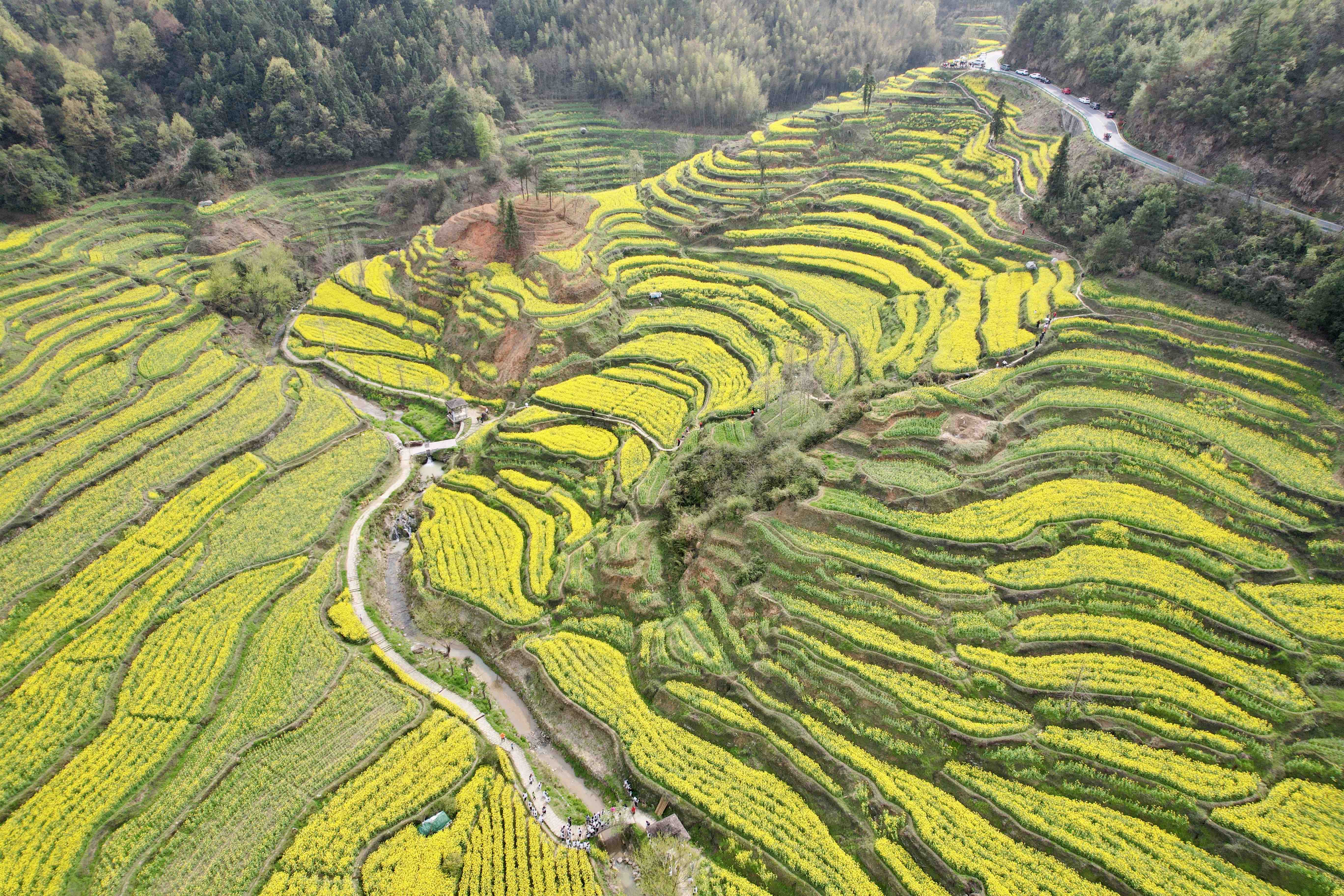 染指流年,人間溫暖,等你乘風(fēng)而來,駐看油菜花開!一眼望去,無邊無際的油菜花田,讓人心曠神怡,流連忘返!