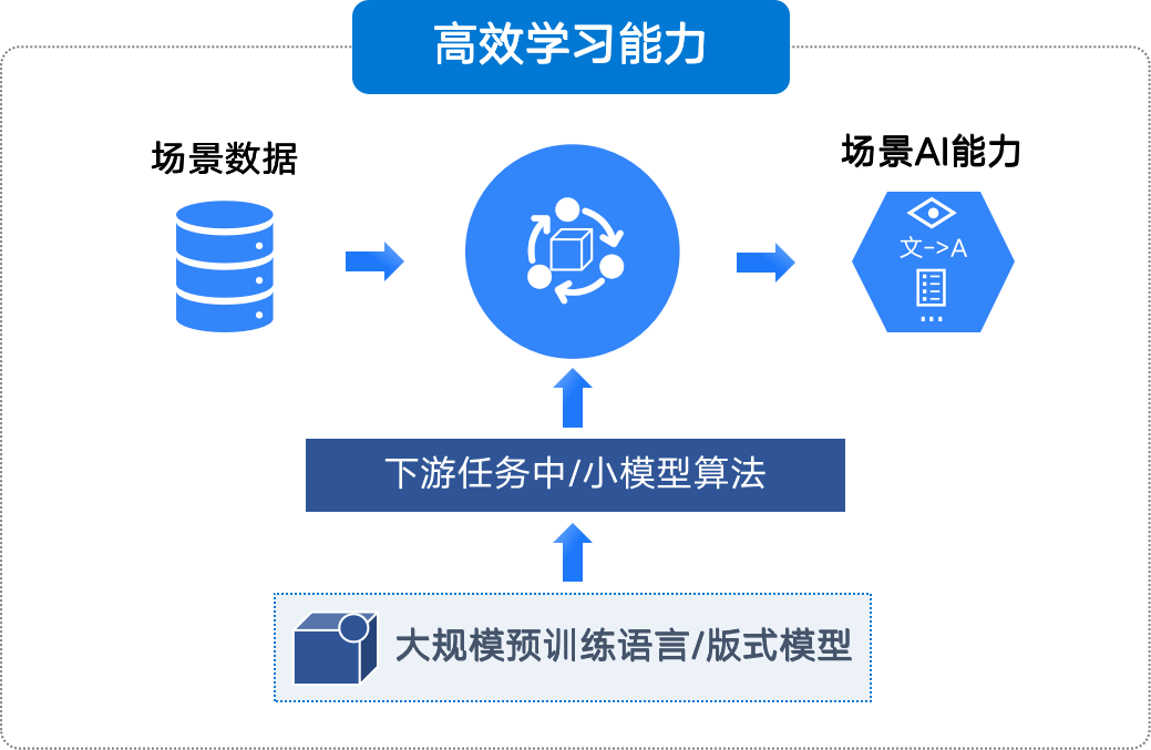 如前節(jié)所述,文檔具有領(lǐng)域特征差異大的特點,主要表現(xiàn)在不同領(lǐng)域文檔之間在種類、版式、語料和表達(dá)方式等方面存在較大差異。因此,高效的領(lǐng)域文檔學(xué)習(xí)能力,是IDP系統(tǒng)必備的基本功能,這也是賽博平臺的核心功能之一。如下圖是關(guān)于賽博平臺高效學(xué)習(xí)能力的原理介紹。