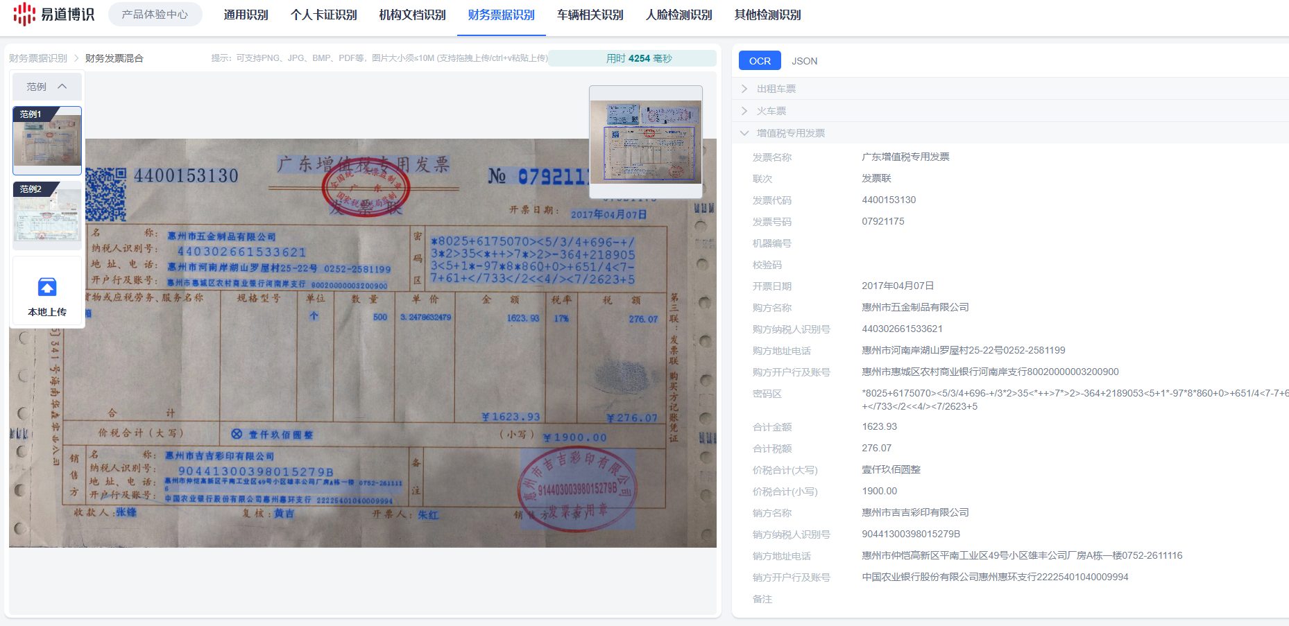 2.、高效處理,節(jié)省時(shí)間成本.傳統(tǒng)人工錄入可能需要幾分鐘甚至更長(zhǎng)時(shí)間,而通過(guò)易道博識(shí)OCR識(shí)別方案,企業(yè)可以在300毫秒內(nèi)完成一張發(fā)票的識(shí)別與數(shù)據(jù)提取。對(duì)于大批量的發(fā)票,OCR系統(tǒng)能夠同時(shí)進(jìn)行批量處理,顯著提高工作效率。