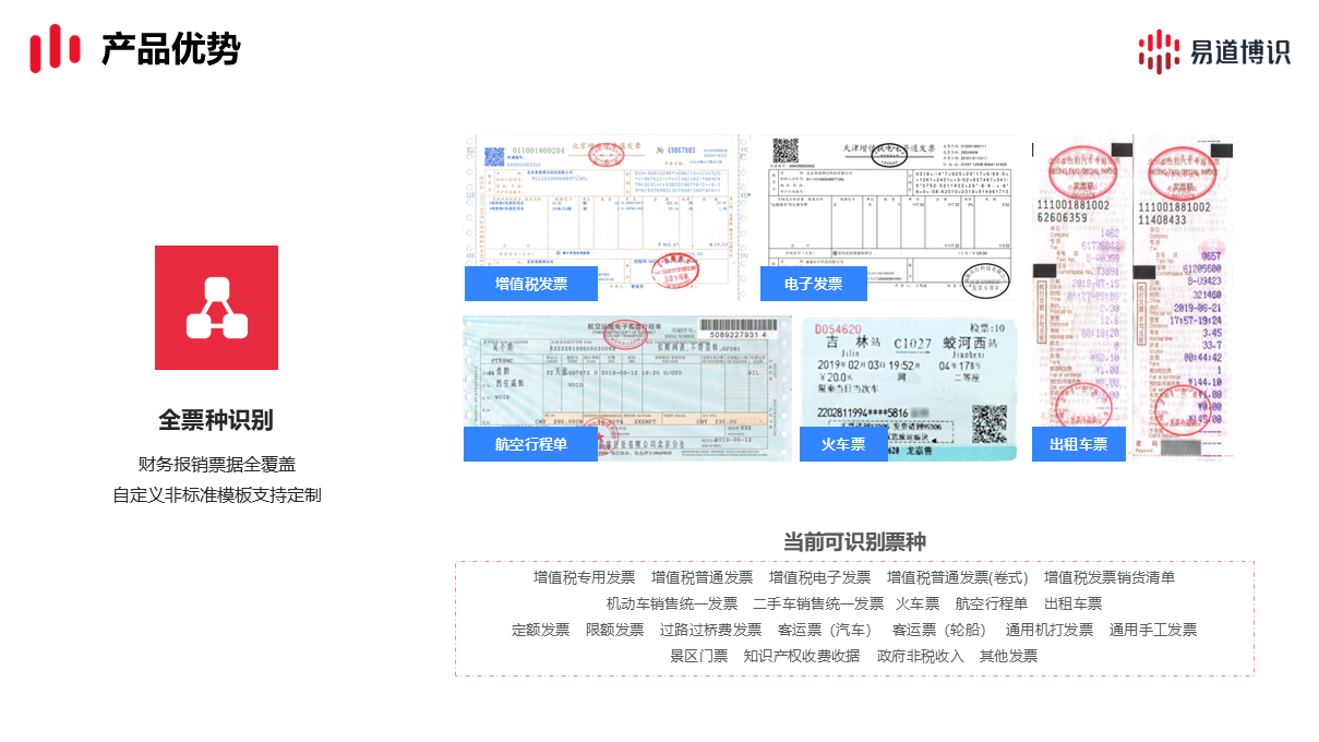 1.問:我們公司收到的發(fā)票種類很多,增值稅、電子、甚至手寫的都有,易道博識(shí)的發(fā)票O(jiān)CR識(shí)別能準(zhǔn)確處理這么復(fù)雜的混合票據(jù)嗎?準(zhǔn)確率怎么樣?