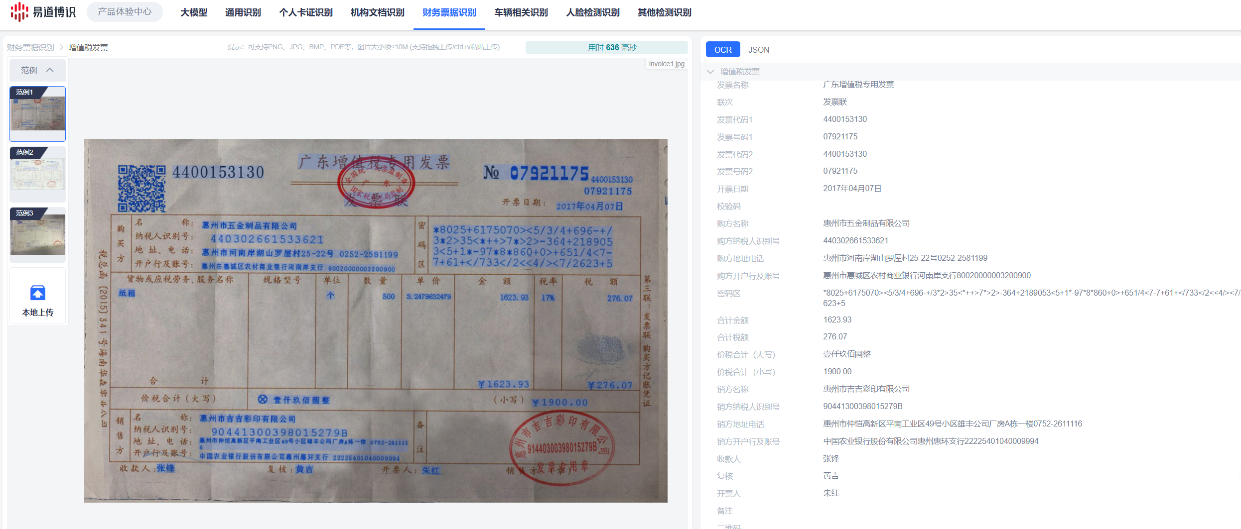 1.易道博識:提供7大類,60多種主流OCR識別場景,覆蓋主流識別需要,比如身份證、銀行卡、發(fā)票/報銷票據(jù)等,還支持財務(wù)報表識別、銀行流水單識別,文字識別精度超99.5%,非常適合企業(yè)的文檔OCR識別需求。