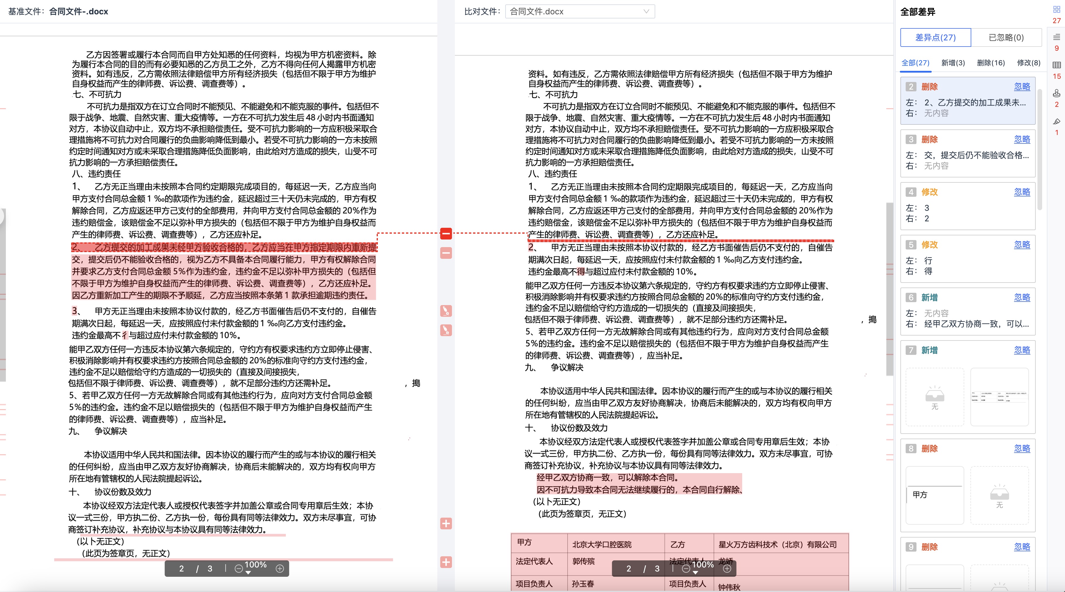 ●系統(tǒng)作用: 系統(tǒng)能清晰對比出新舊版本中違約責(zé)任條款的差異。識別出顯失公平的修改。