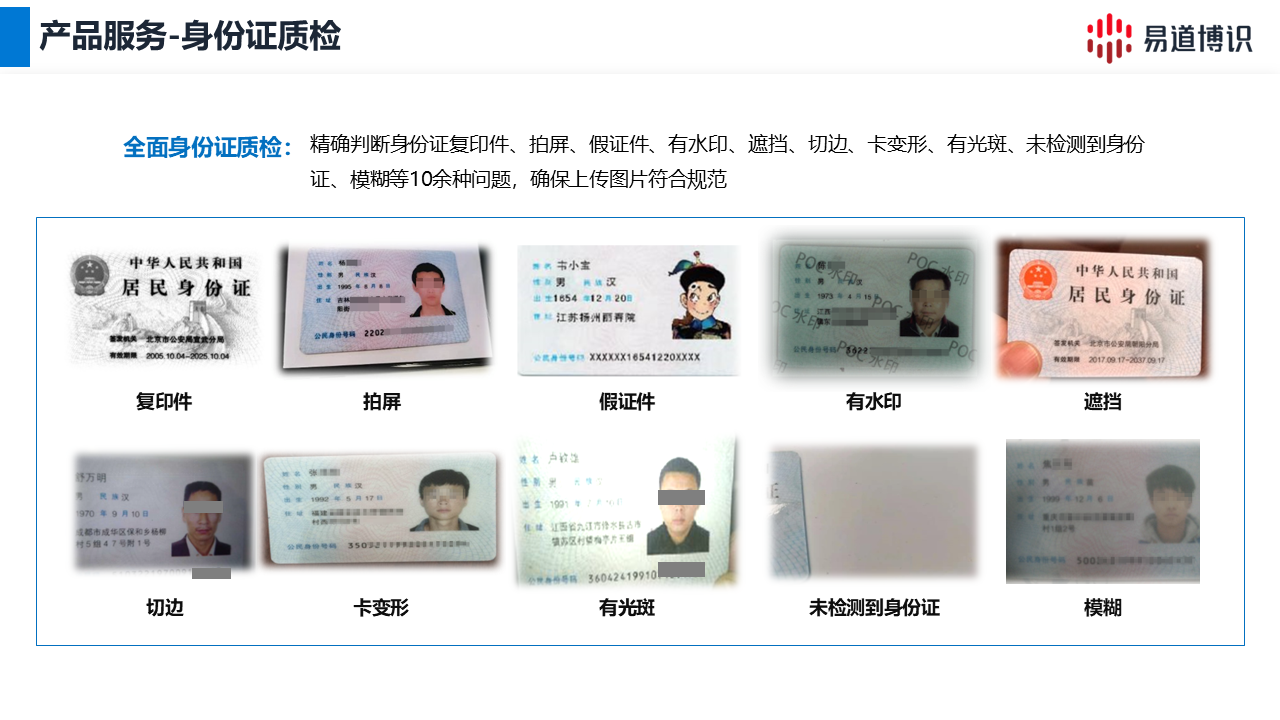 易道博識(shí)智能文檔處理平臺(tái),支持身份證OCR識(shí)別,而且可以有效處理影像質(zhì)量問題。