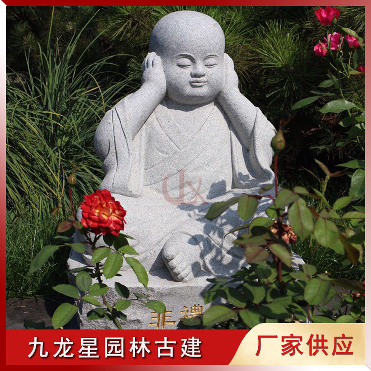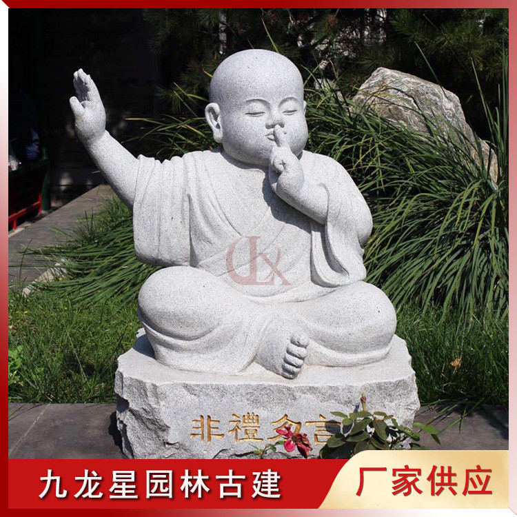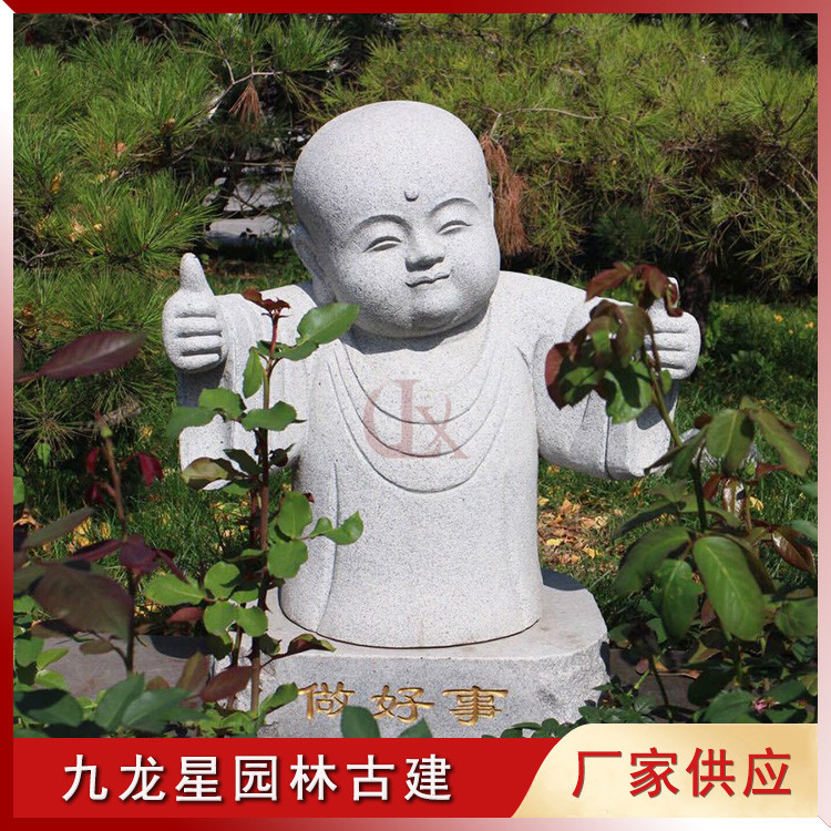 石雕中有一類特別的佛像作品,就是石雕小沙彌(又名小和尚),石雕小沙彌實際上是佛像的一種補充,是佛教中佛法的未來力量和未來希望。早期的石雕小沙彌實際上是以釋迦摩尼和彌勒佛小時候的造型為原形的一種體現方式,人們把他們小時候修行的一種狀態和一種形態,動作都記錄下來,然后以石雕的方式表現出來,這一類特別的作品就是石雕小沙彌的前身了。