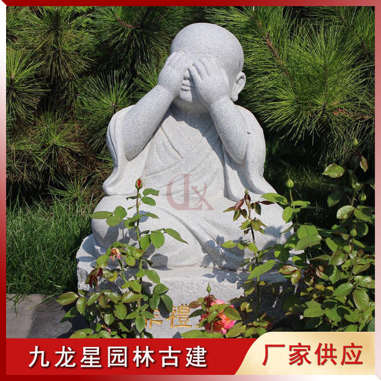 一尊尊石雕小沙彌童子錯落有致地擺放在寺院的庭院內,既增添了景觀的觀賞性,又讓人們可以更加輕松地接觸佛教文化,不會那么拘束。