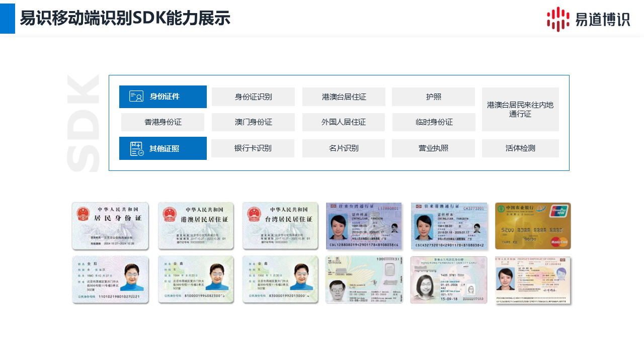 ● 輕量化移動SDK:為配合銀行移動端業(yè)務(wù)拓展,方案提供了高性能的移動SDK。該SDK支持安卓、IOS及鴻蒙系統(tǒng),在移動端實現(xiàn)了極高的性能,如身份證識別耗時低于260毫秒 ,確保了移動應(yīng)用的用戶體驗。